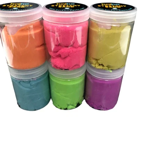 Kaiko Stretchy Sand is the perfect sensory toy for all ages! This stretchy cotton sand feels like slime mixed with kinetic sand. However, it is not sticky like traditional kinetic sand, and still provides a satisfying tactile experience. Comes with a cutter shape and easily vacuums up. Use it for play or stress relief - it's great for both!