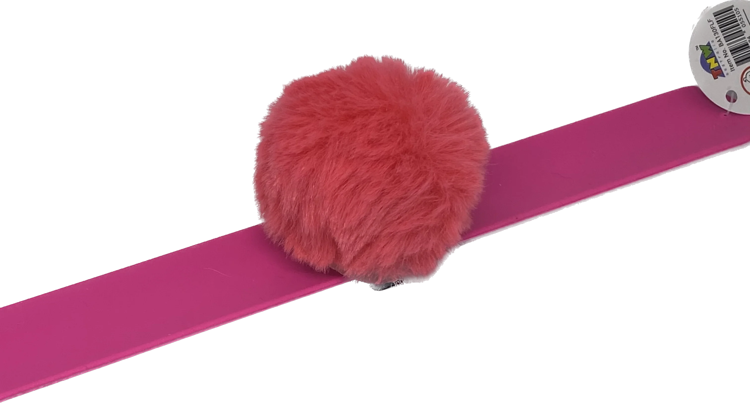 The fluffy pom pom ball slap bands come in a range of 6 colours, chosen at random.