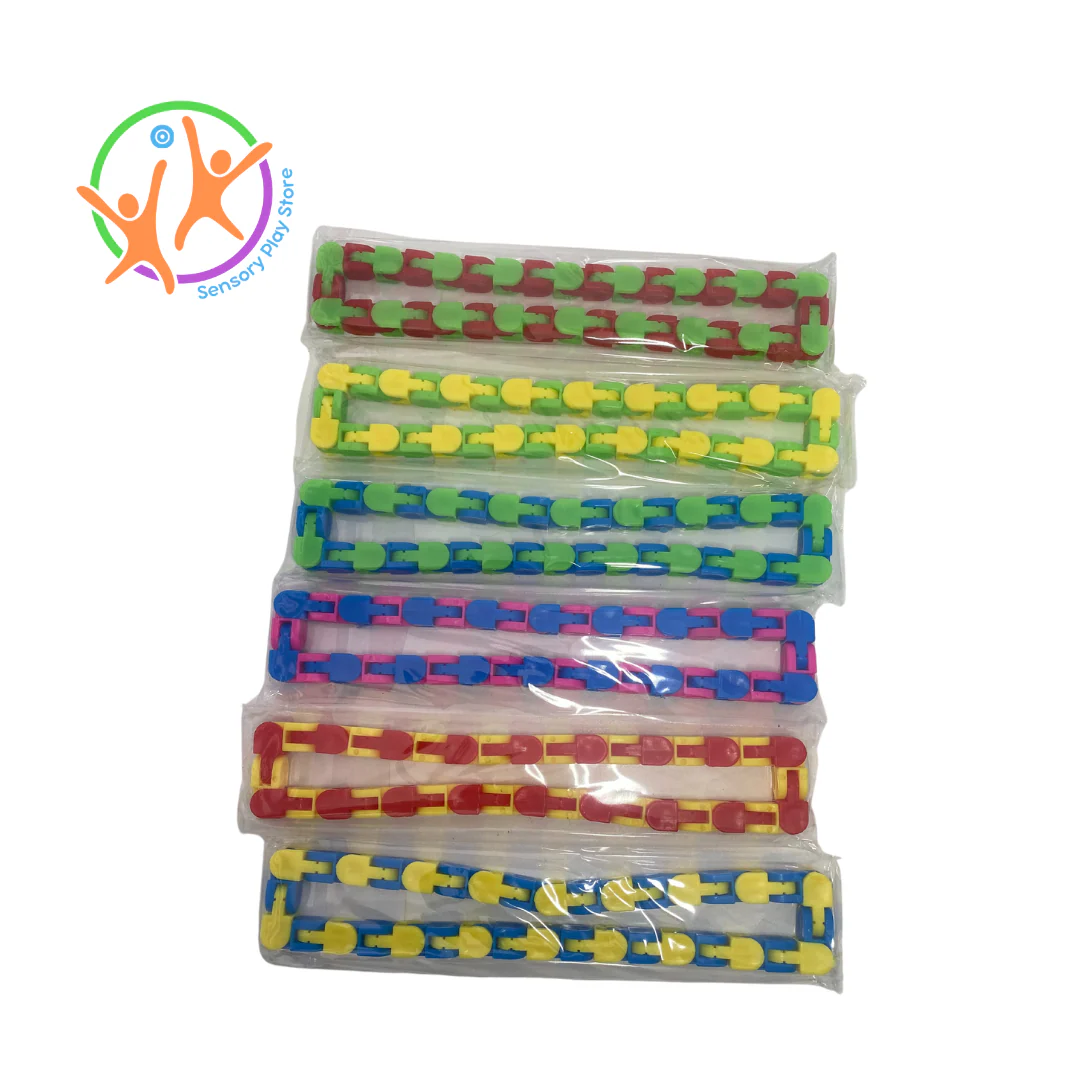 Our Wacky Track Fidget Chain is the ultimate fidget toy for shaping, clicking and twisting. Manipulate it into thousands of shapes and unique configurations whilst listening to the satisfying clicking noises it makes. This plastic chain link fidget meets your ASMR and fidgety needs in one.